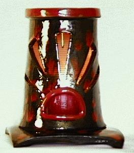 Each fragrance burner is hand made and shaped from soft clay. These are not casts from molds. Each piece is signed and is an original.The fragrance burners are designed to be used with fragrant oils or wax. The fragrance is added to the bowl at the top of the burner and a candle is placed within the burner.