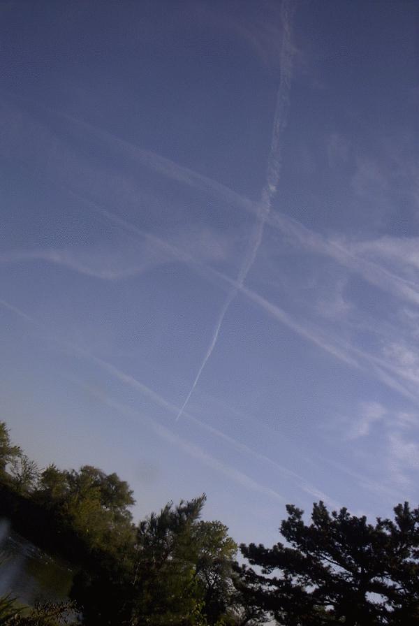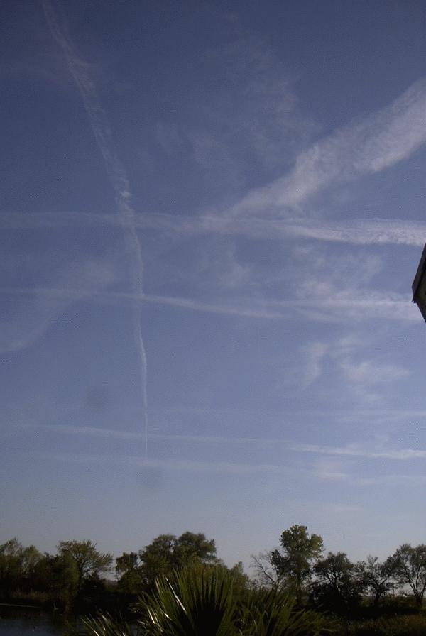 I too am a Oklahoma City resident who has noticed the abnormal jet airplane condensation trails for several years. I wish to share several exceptional pictures of the Oklahoma City skies taken the afternoon of 10-29-2001.